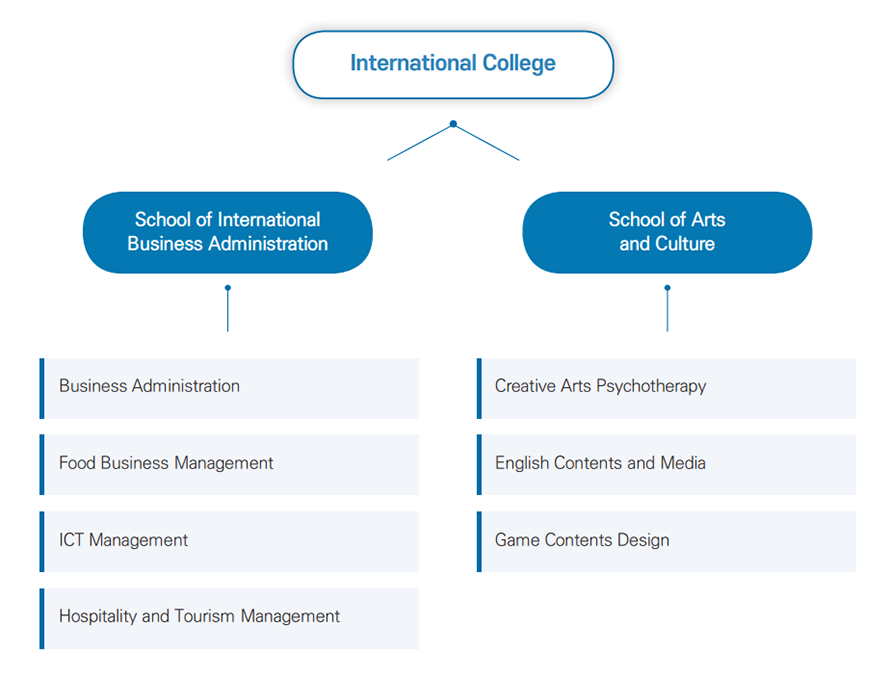 - Two schools and seven programs are offered under the International College