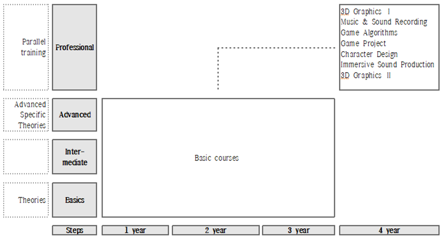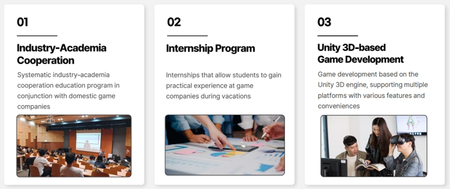 | Educational Objective | In order to create creative and fun games, we learn and practice game elements such as game planning, game graphics, game programming, and scenarios. Through this curriculum, we train experts who can develop games of various genres. |