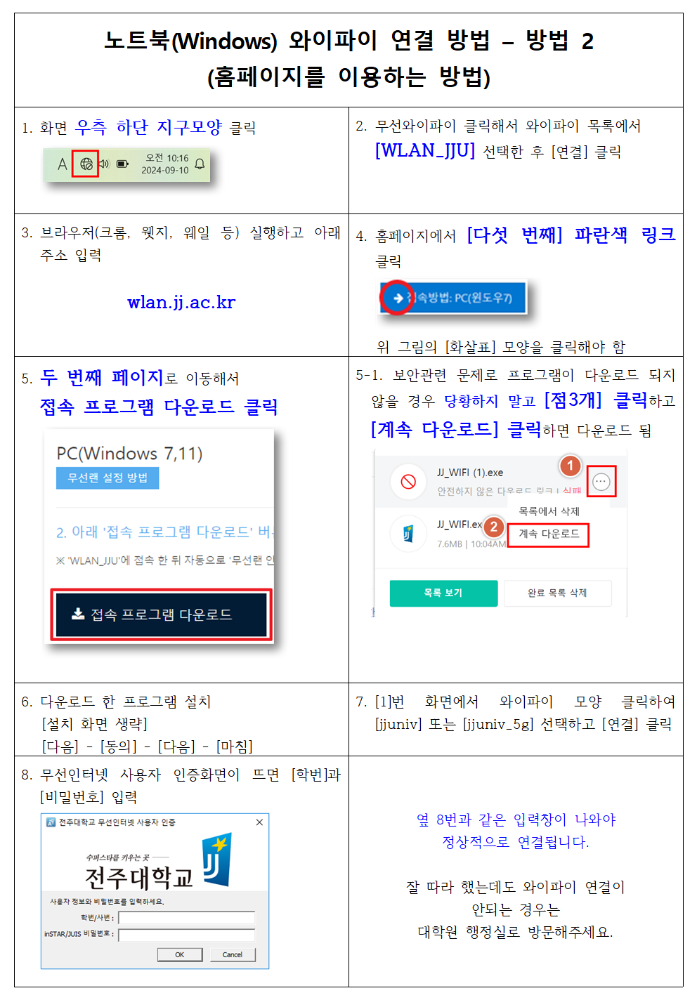 1-1. 노트북 설정(접속프로그램을 직접 다운로드해서 연결하는 방법)